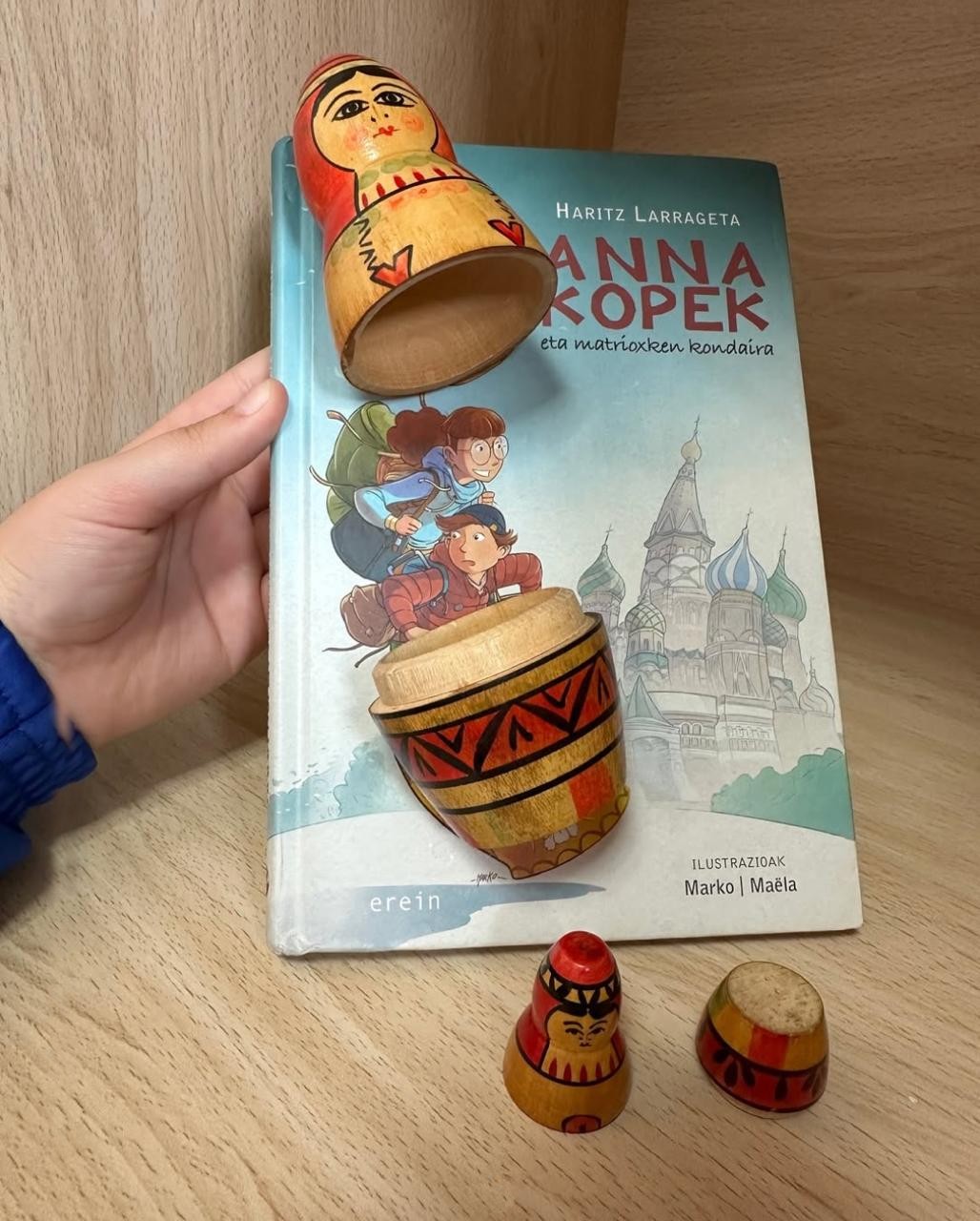 Utilizando parte del cuerpo de las personas o los elementos a nuestro alcance, se hará coincidir con la imagen que aparece en la portada del disco o libro seleccionado (disco de un grupo que cante en euskera y libro escrito en euskera)